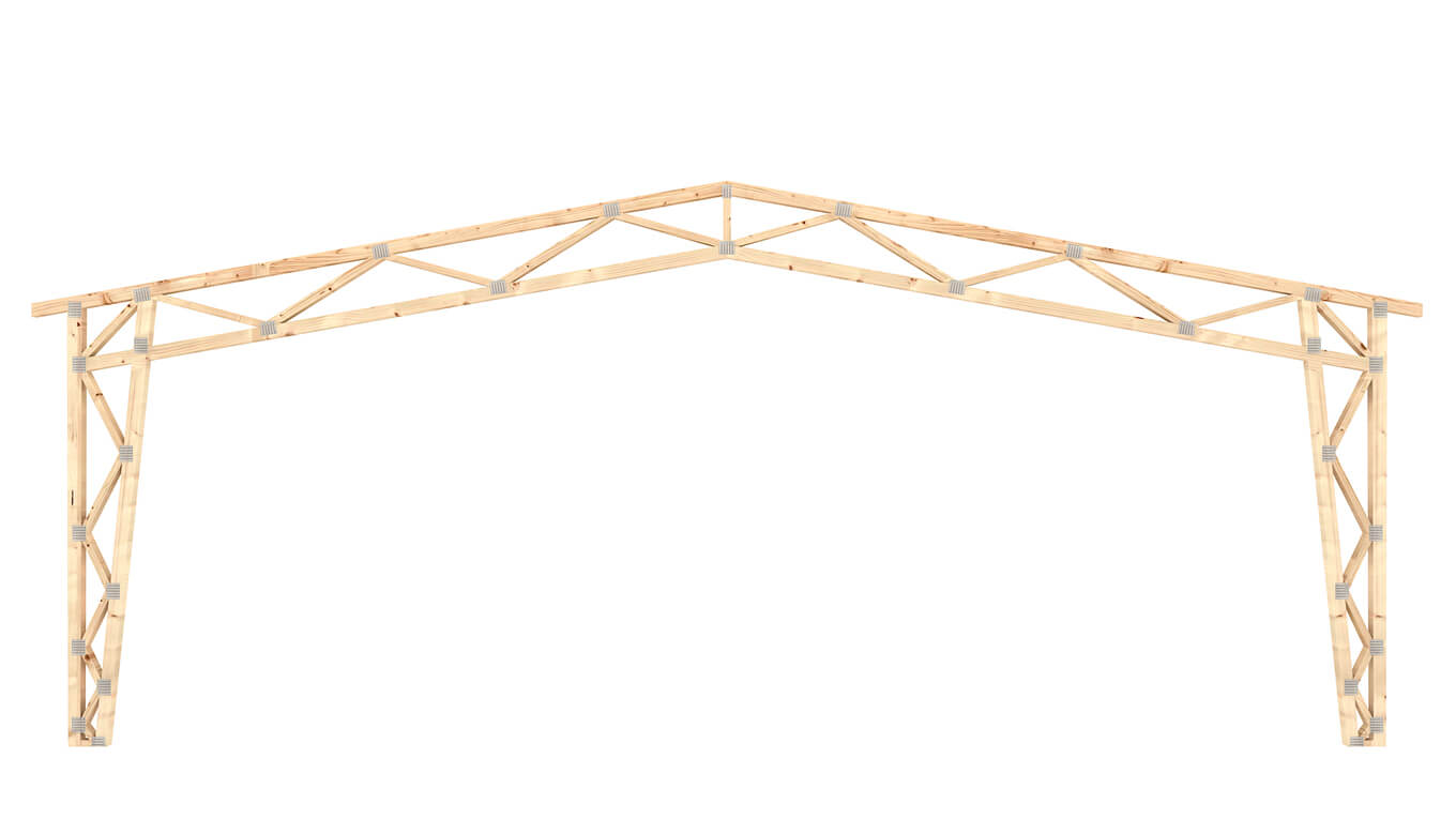 Стропильные конструкции из дерева на МЗП (металлозубчатых пластинах) пролетом до 36 метров являются наиболее подходящими для строительства коровников, свинарников и зданий сельскохозяйственного назначения.